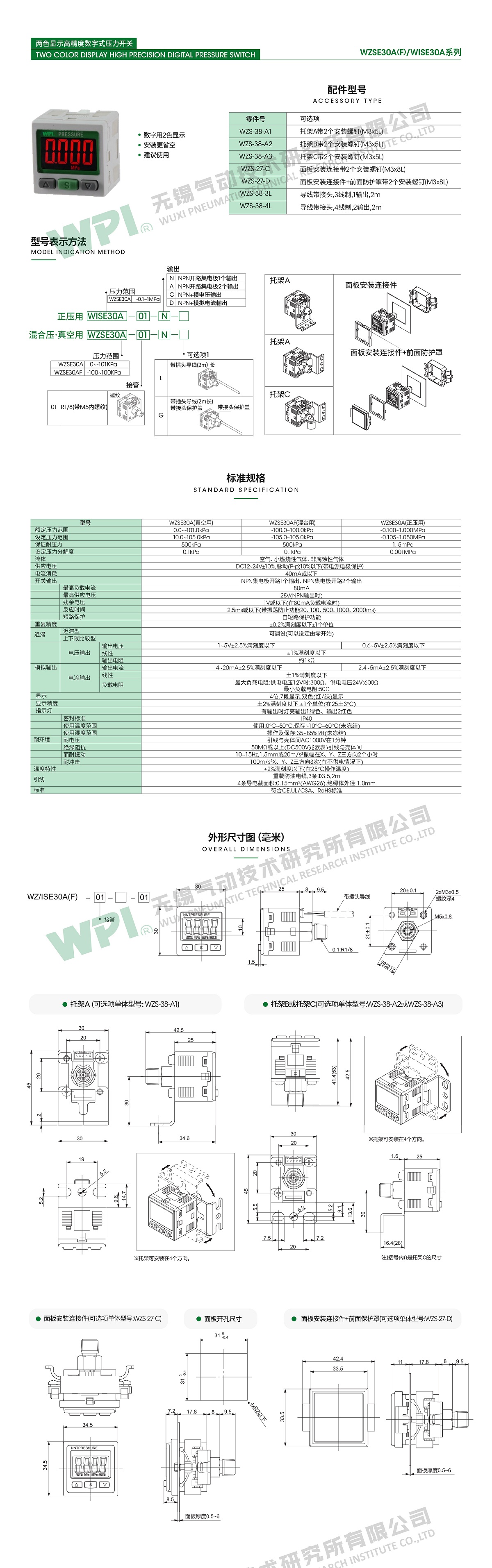 兩色顯示W(wǎng)ZSE30A系列 高精度數(shù)字式壓力開(kāi)關(guān)