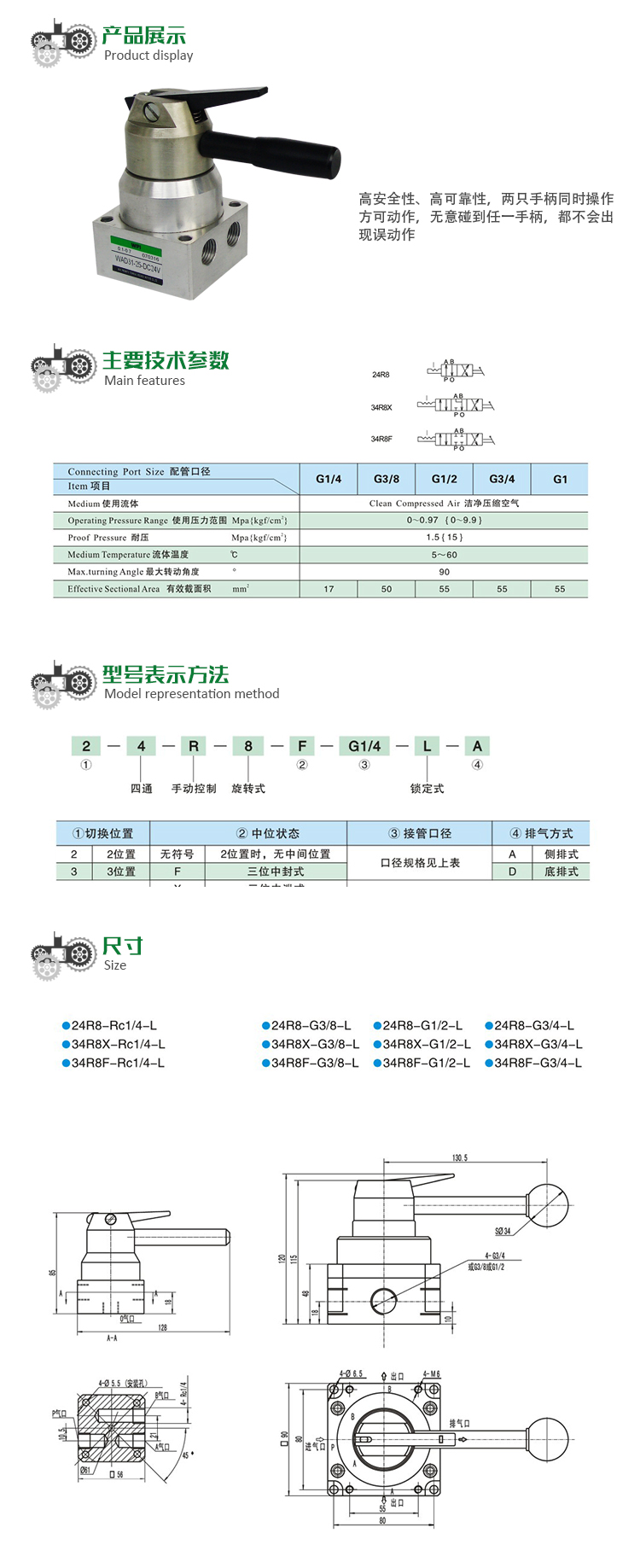 24R8系列 4通鎖定式手動換向閥