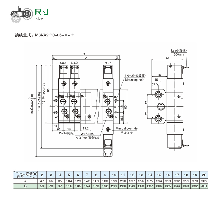 M3KA2系列 先導式5通匯流板型通電磁閥、氣控閥