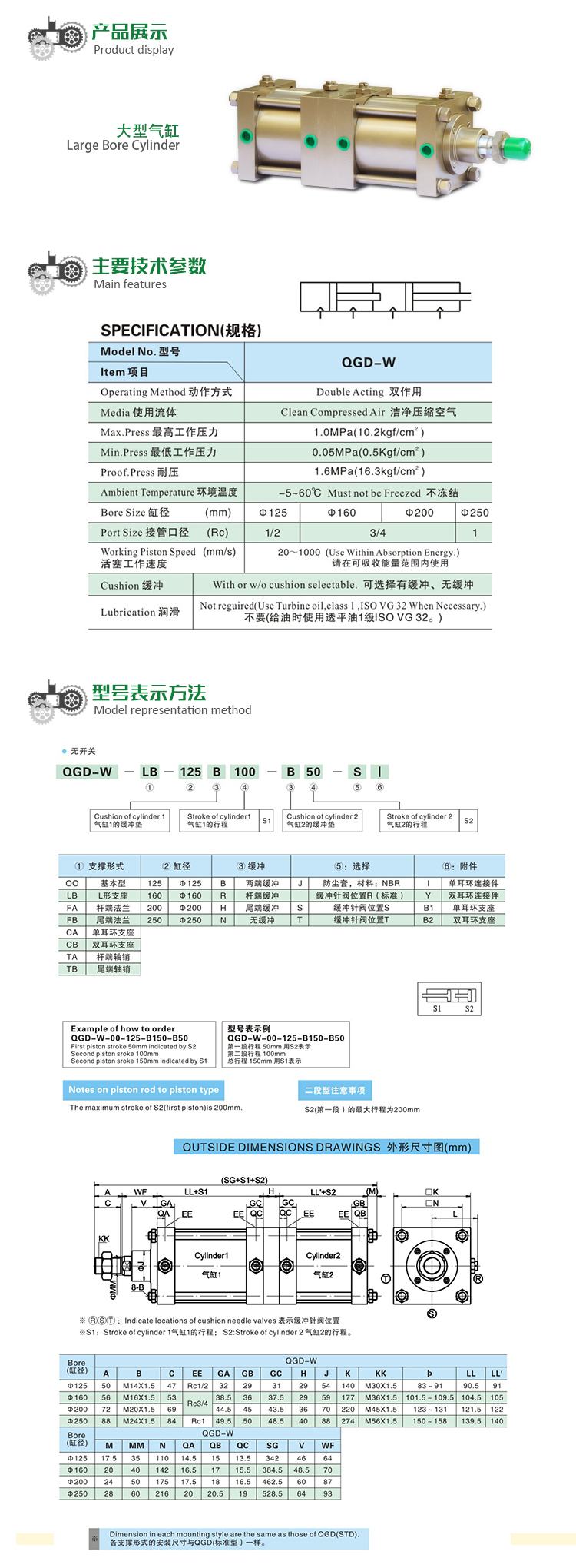 JIS QGD-W 大型氣缸